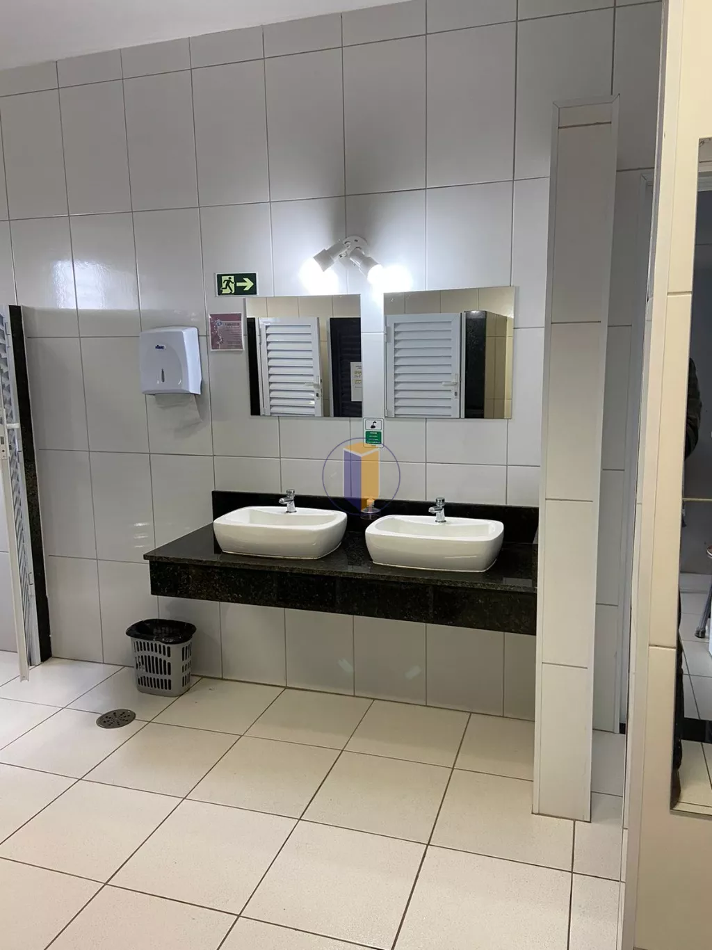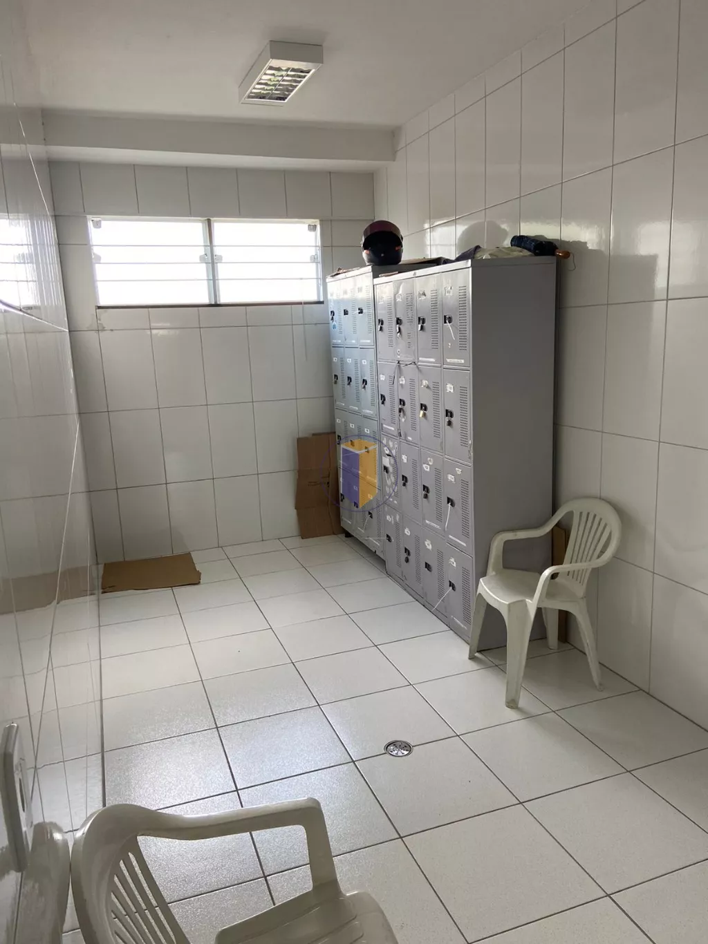 No térreo, há vestiários separados para homens e mulheres, com dois box para chuveiro, além de dois banheiros comuns e um banheiro adaptado para pessoas com deficiência em cada ambiente. Também há três banheiros na área interna do térreo, sendo um deles adaptado para pessoas com deficiência.