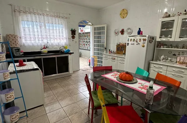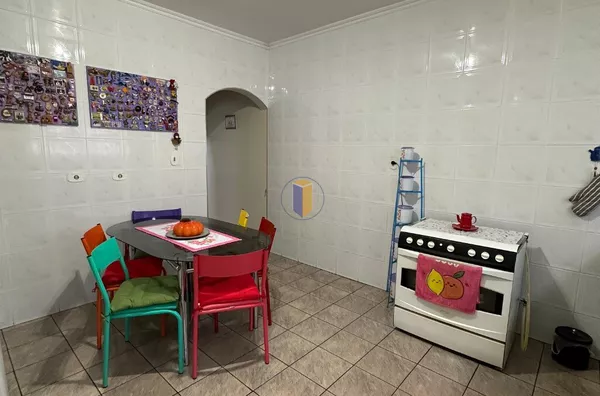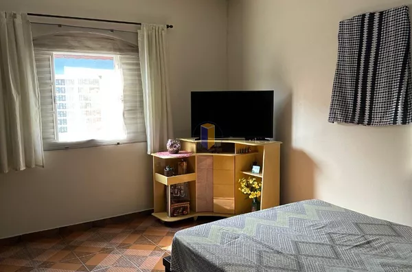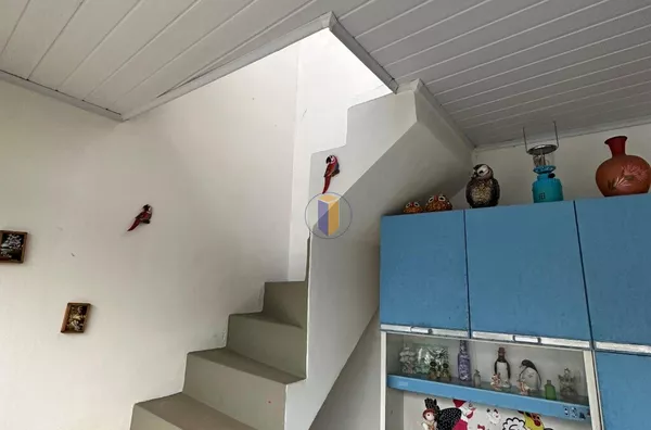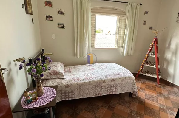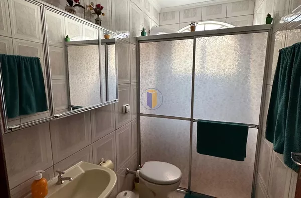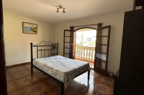 No piso superior, o imóvel conta com 03 dormitórios, sendo 01 deles com sacada, proporcionando um espaço arejado. Há também 01 banheiro nesta parte da casa.