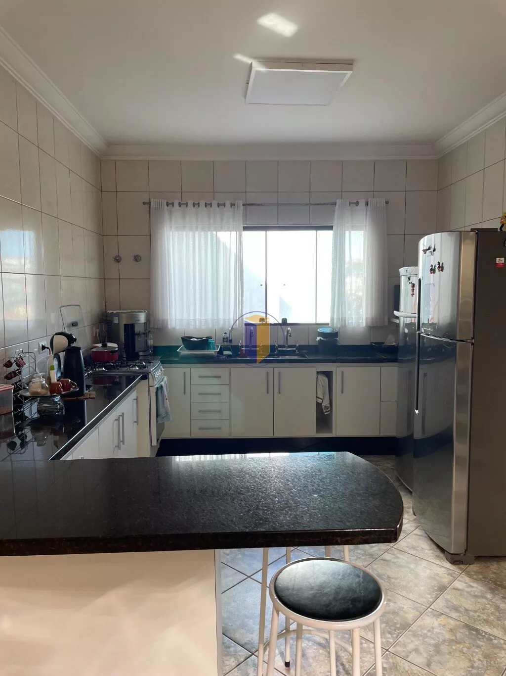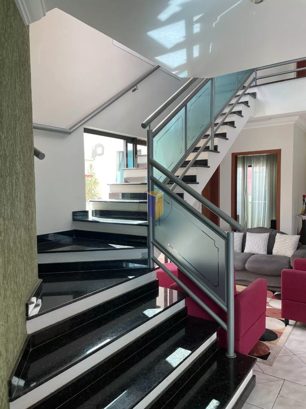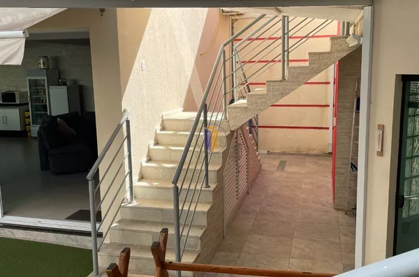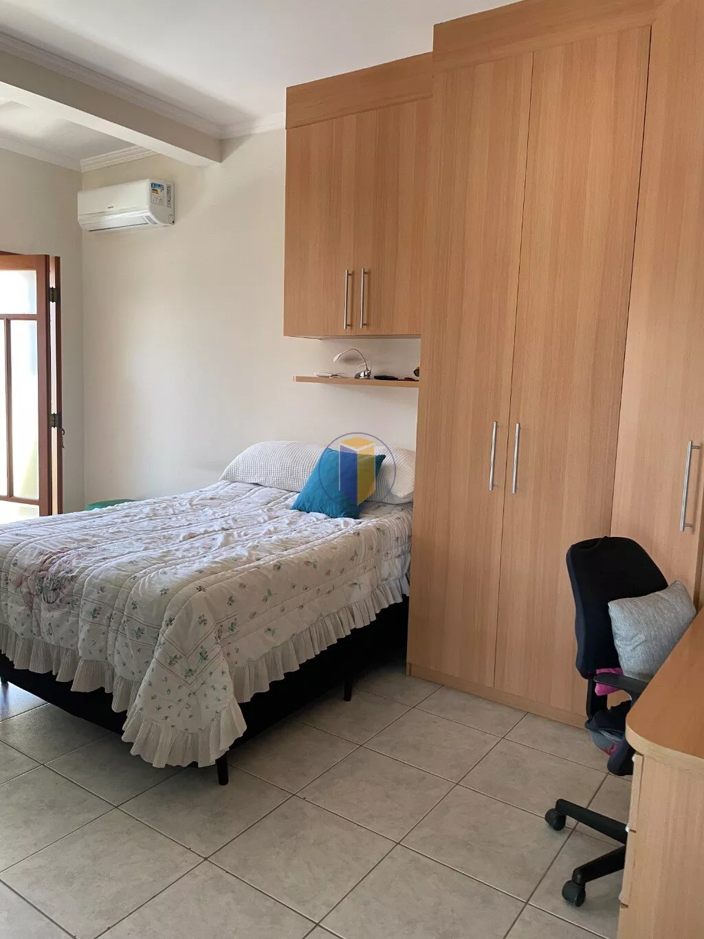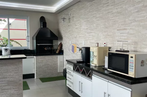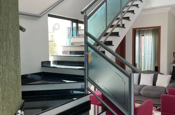 Pavimento superior, sala íntima, 3 suítes (sendo uma master) todas com armários, sacadas, ar condicionado. Fundos acima do salão de festas rampa de acesso á 3 dormitórios com ar condicionado, 1 banheiro social com box em vidro temperado.
