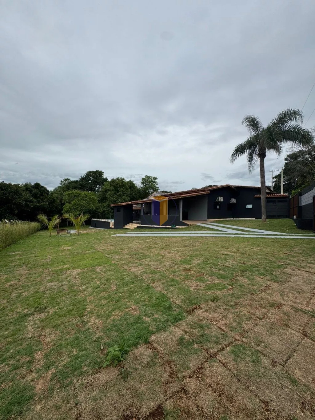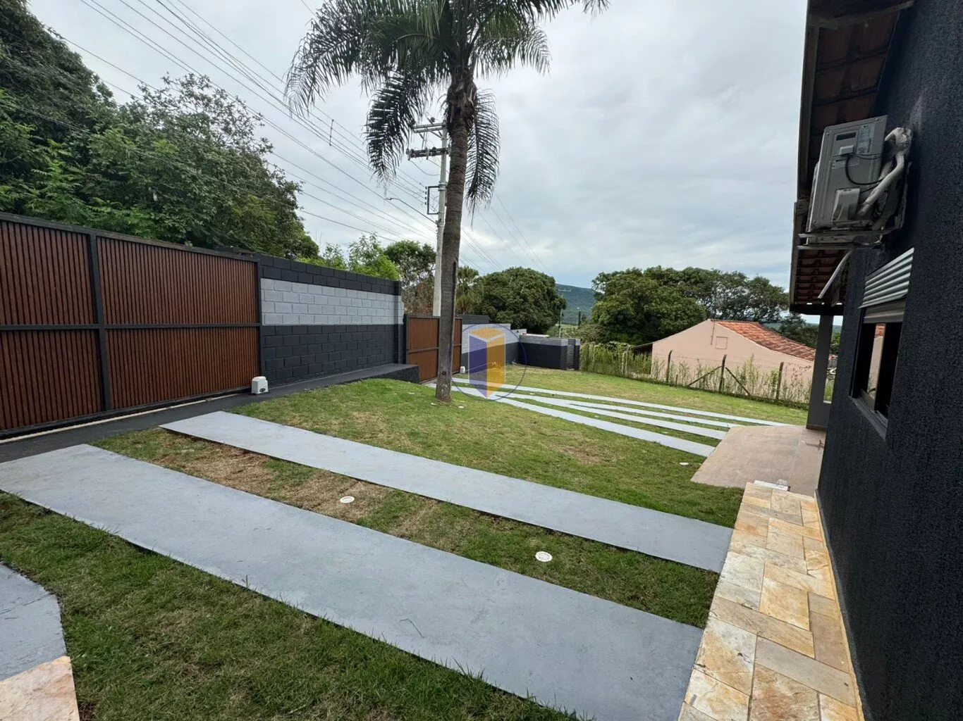 - Caminhos de cimentos para até 7 carros e garagem aproveitando o gramado para até 15 carros no total;