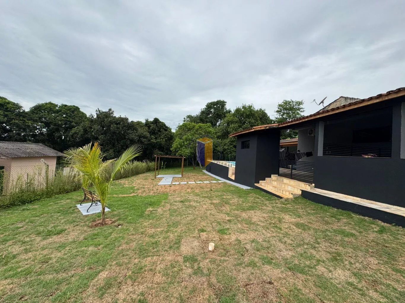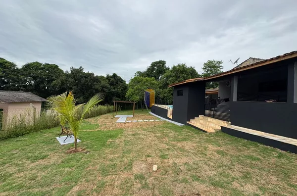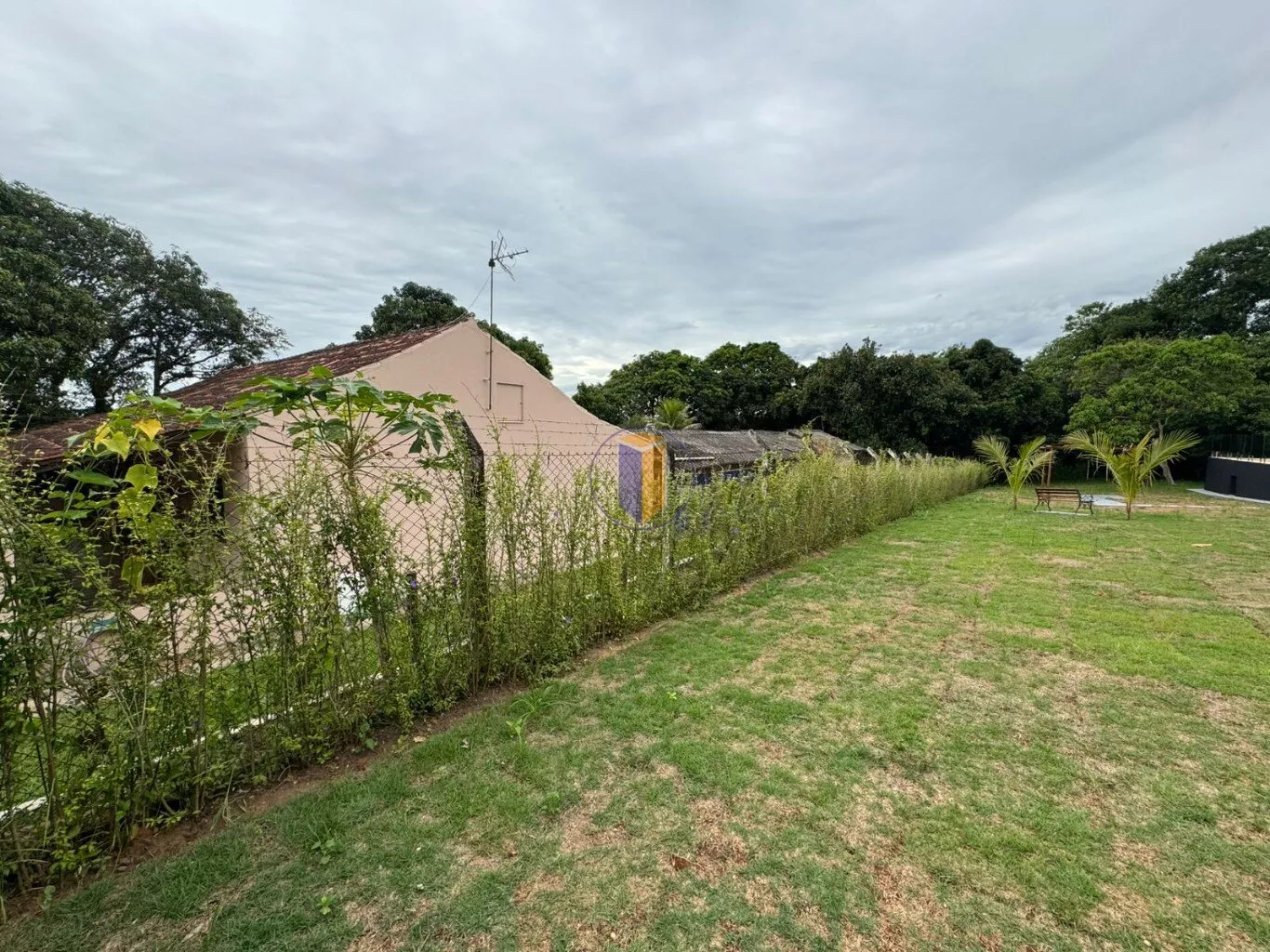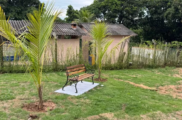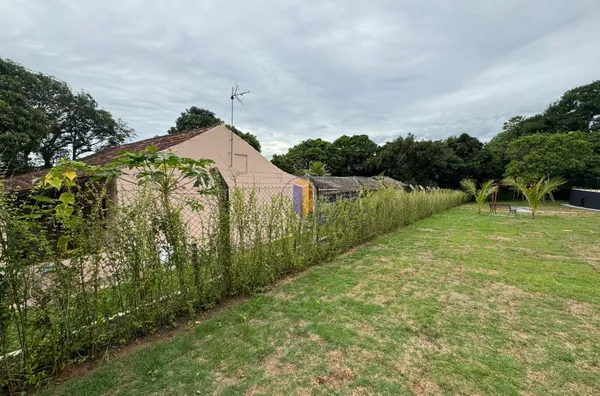 Terreno de 1.800m²: 1.200m² área útil e 600m² de preservação, com gramado e árvores frutíferas como mamão, manga e goiaba, limão mexerica.
