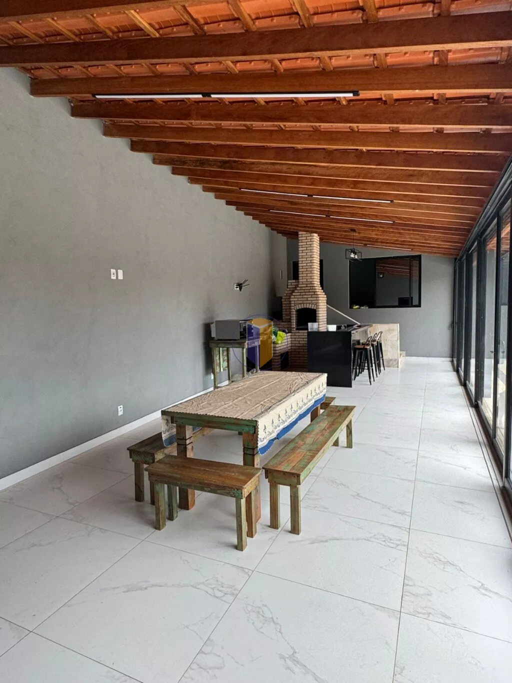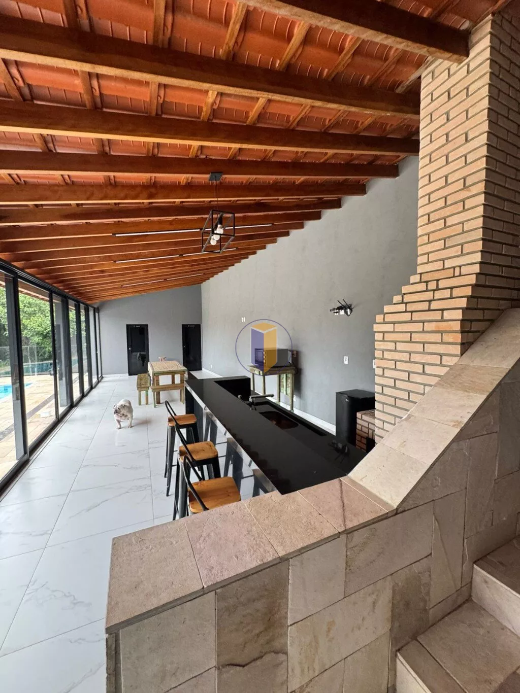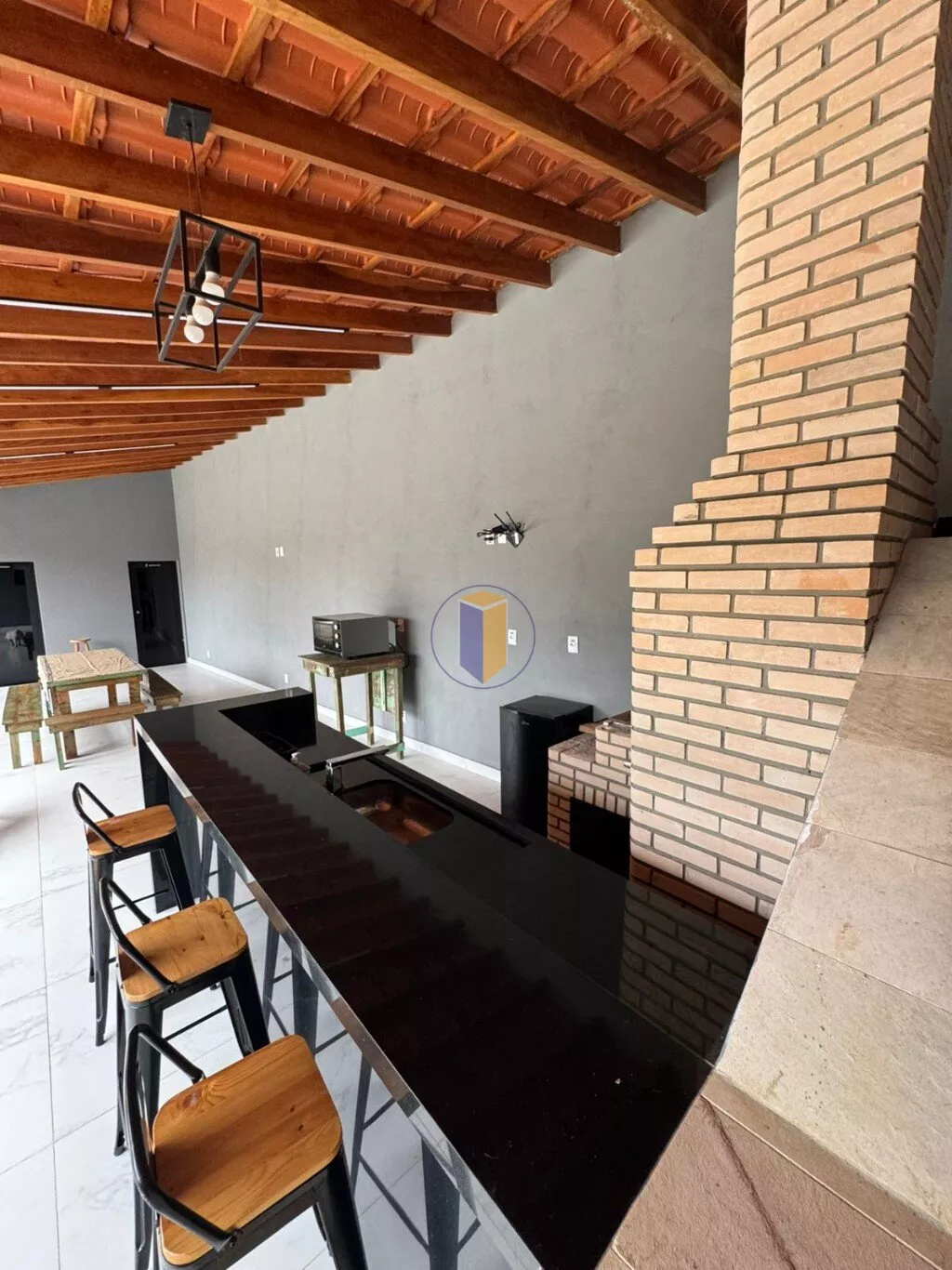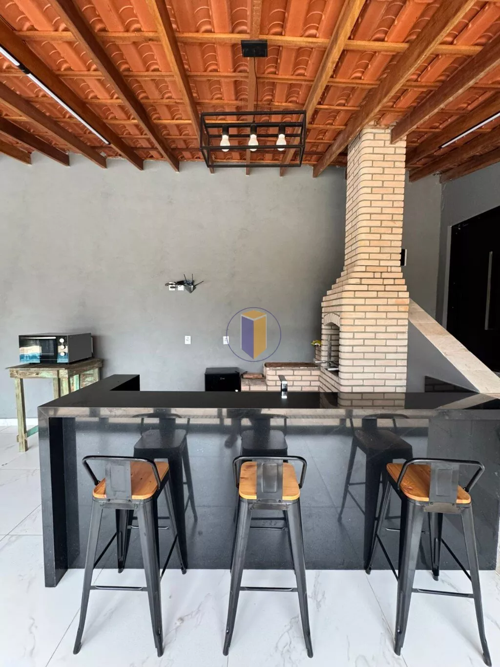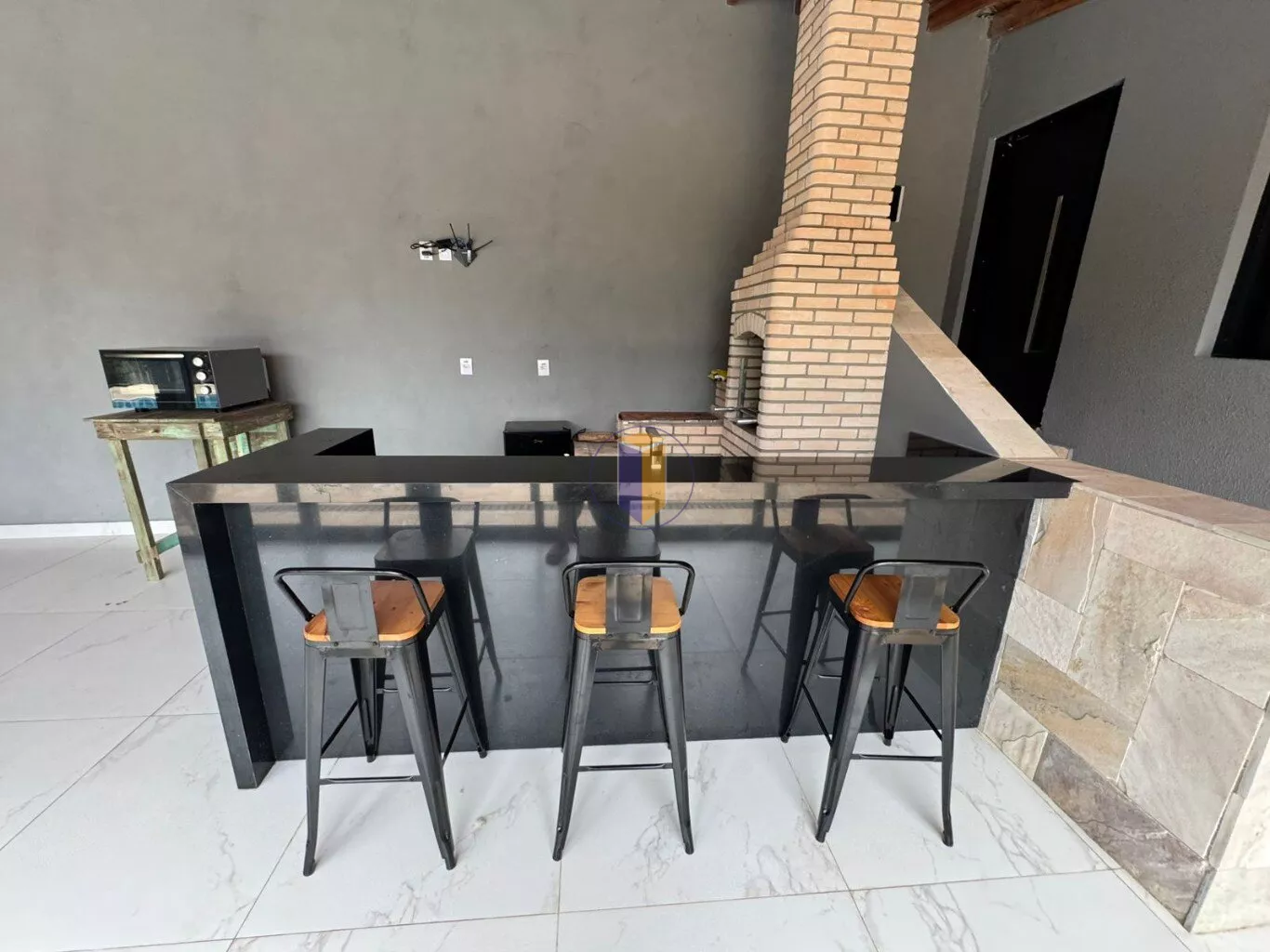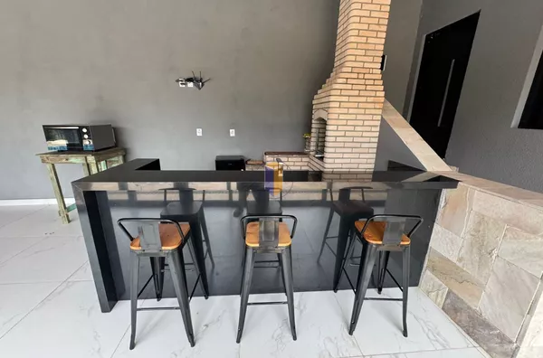 - Balcão com pia e área para o barzinho com 3 banquetas;