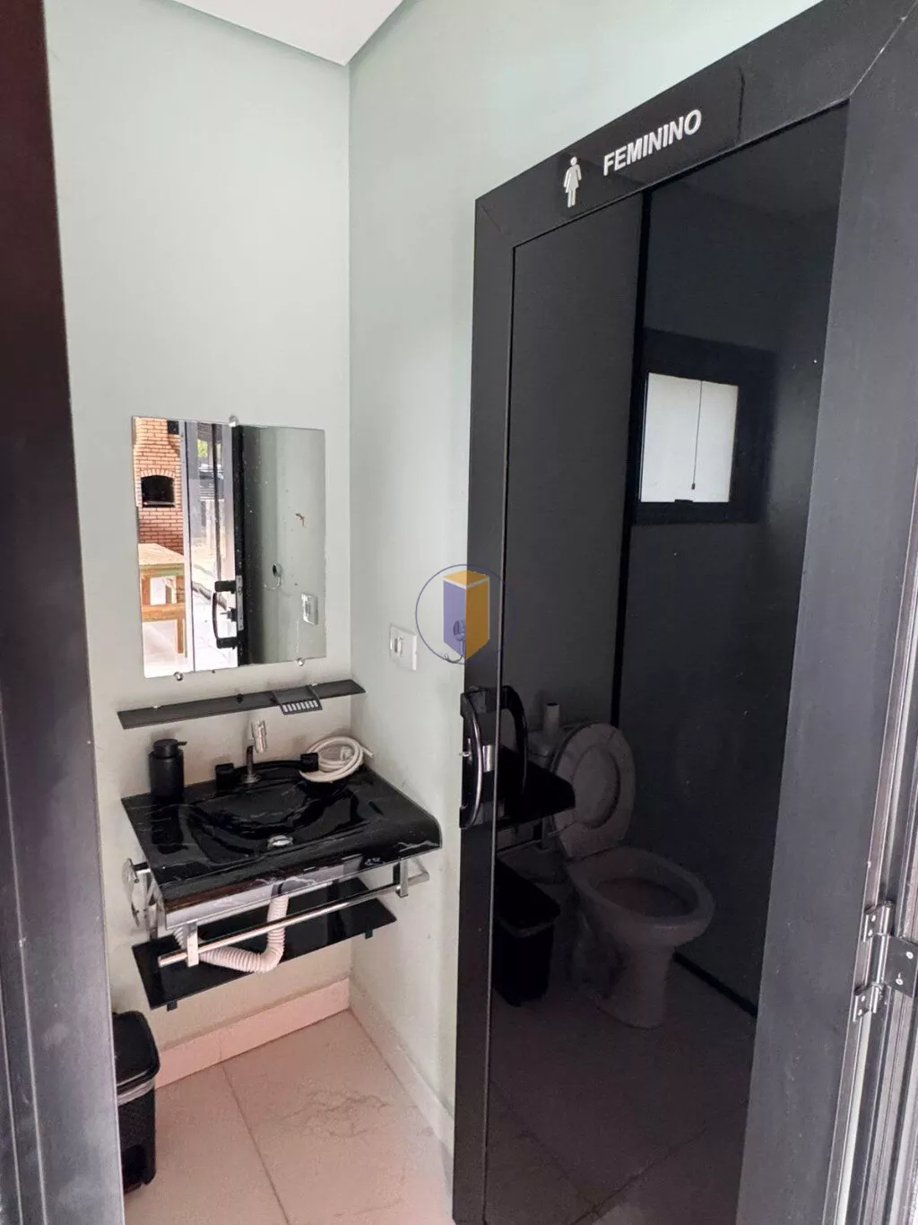 - 2 banheiros (masculino e feminino) com box até o teto para banhos dos convidados sem ter a necessidade de usar a parte interna da casa;