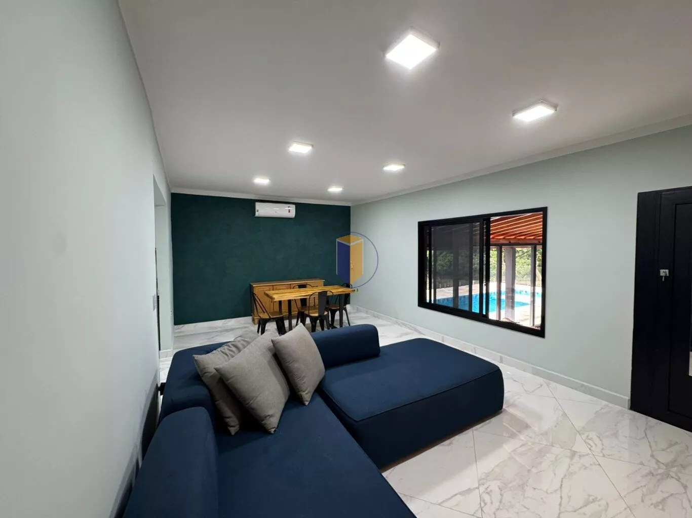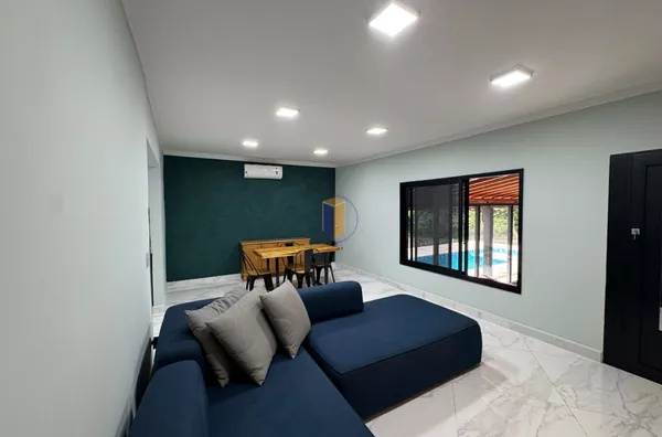 - Com móveis novos sofá moderno que ficaram na chácara;