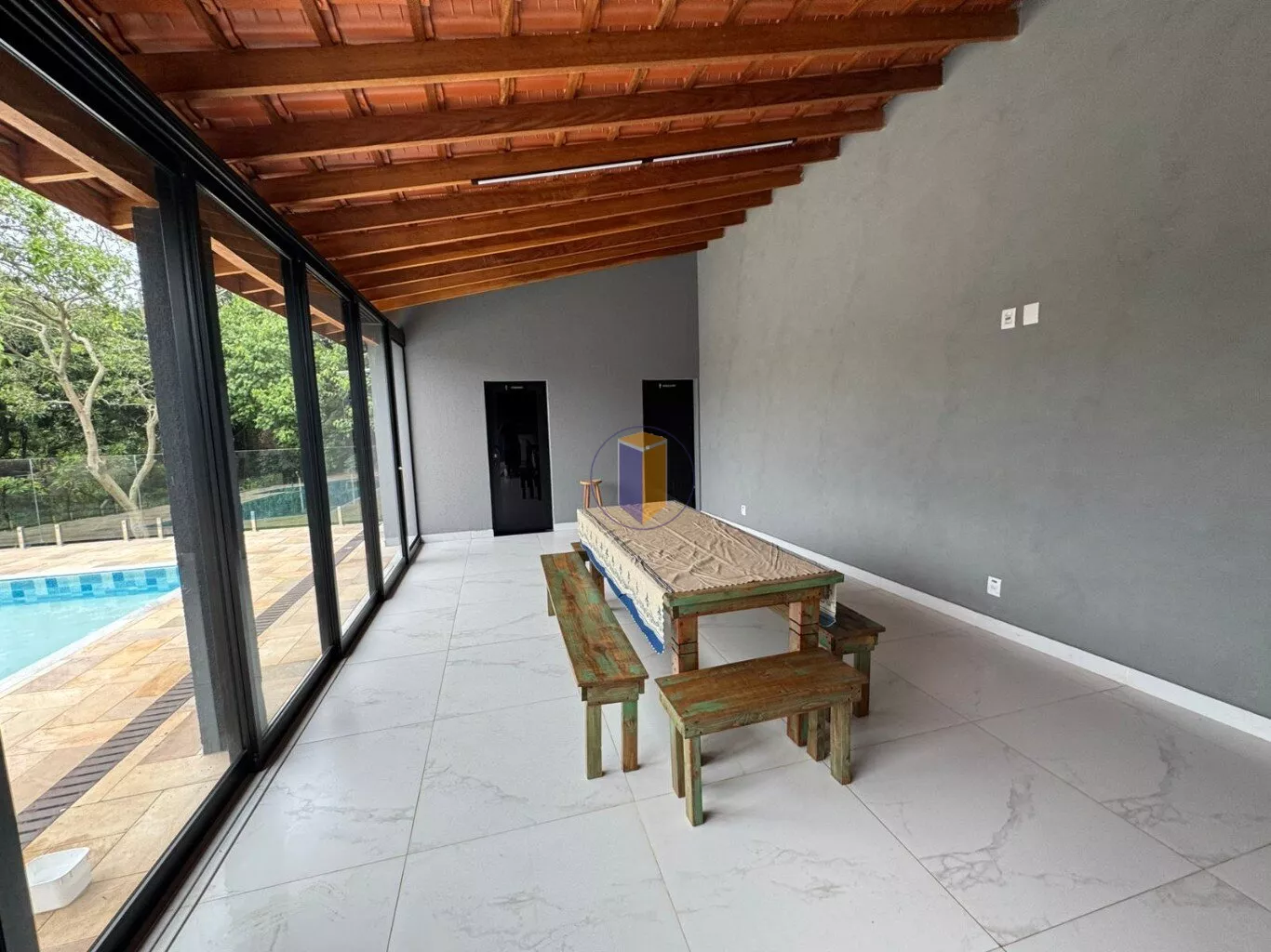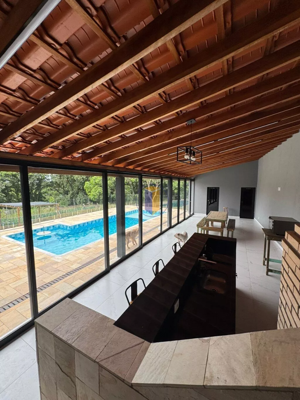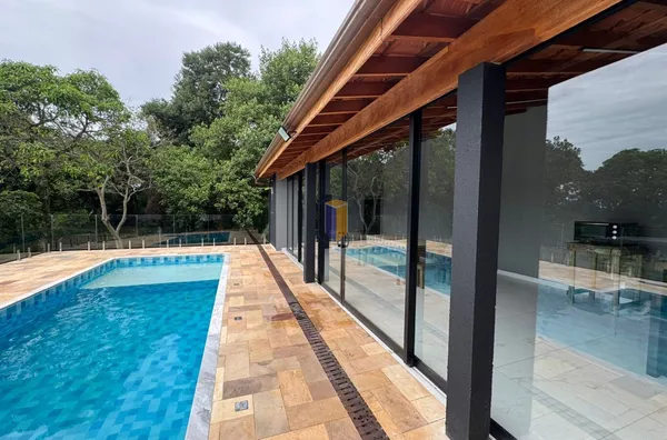 - Com portas em vidros 8 folhas com isolamento total da piscina;