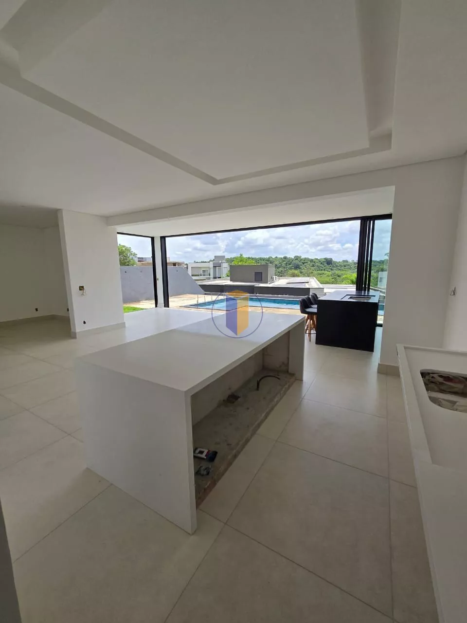 - Cozinha: Moderna, equipada com ilha central, cooktop e depurador de ar