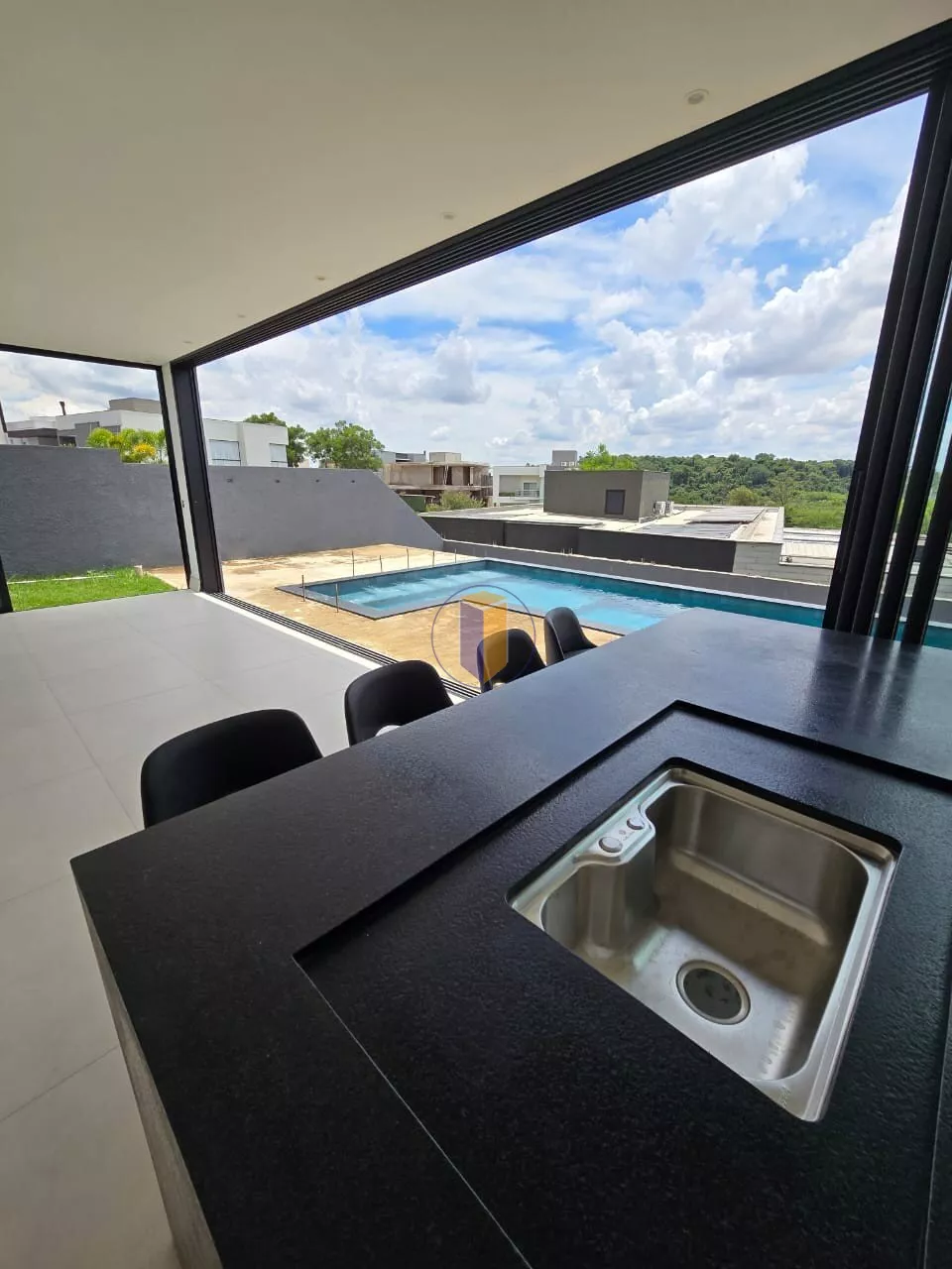 - Salas: 3 ambientes distintos, incluindo uma sala de TV, uma ampla sala de entrada com pé-direito duplo e uma sala íntima no segundo andar
