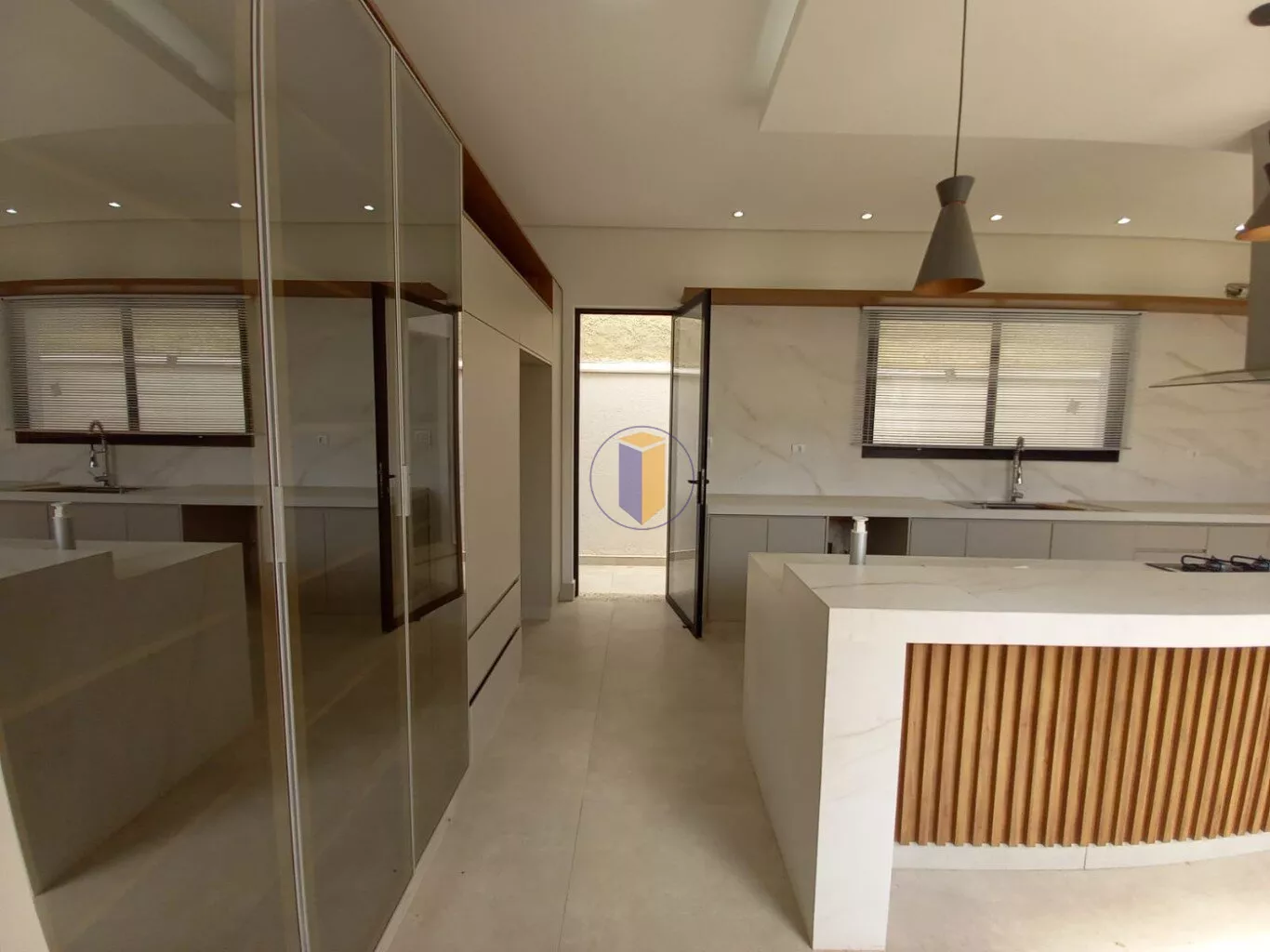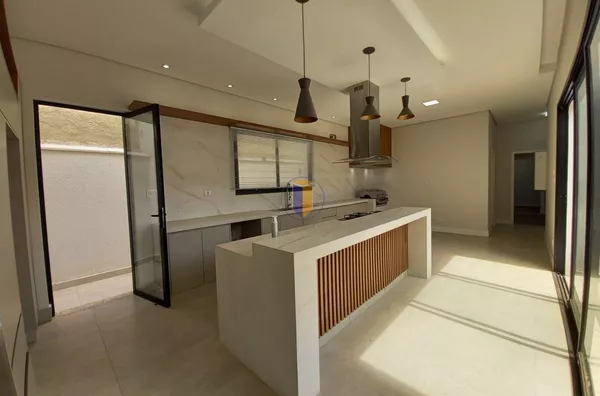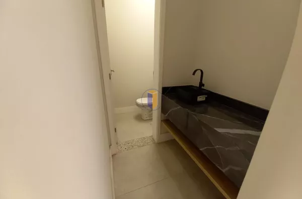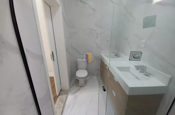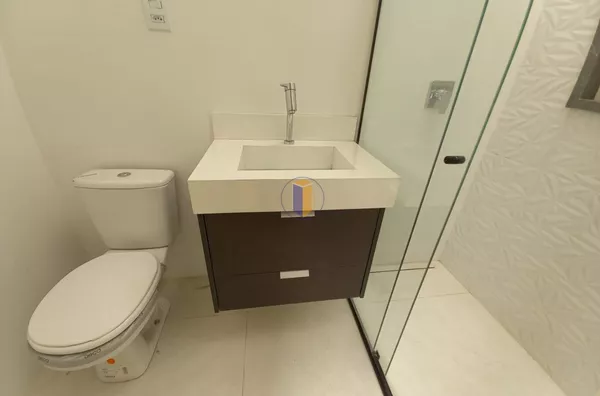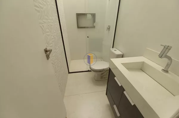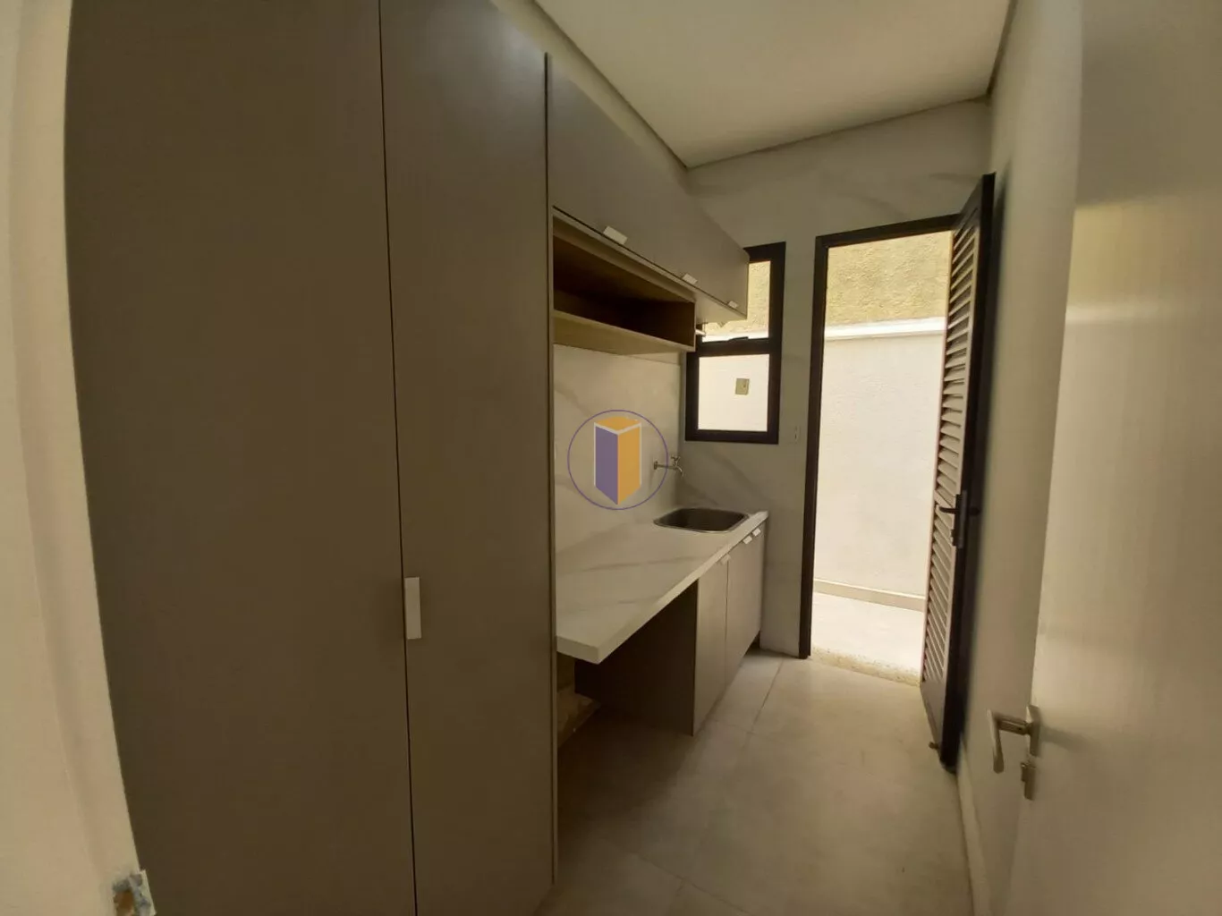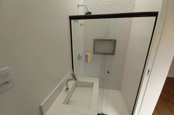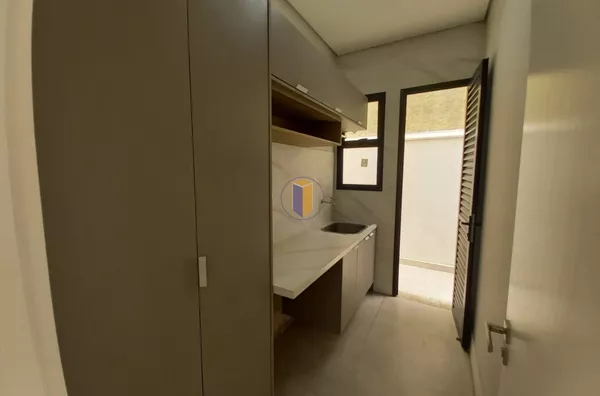 Móveis planejados na cozinha, banheiros e área de serviço.