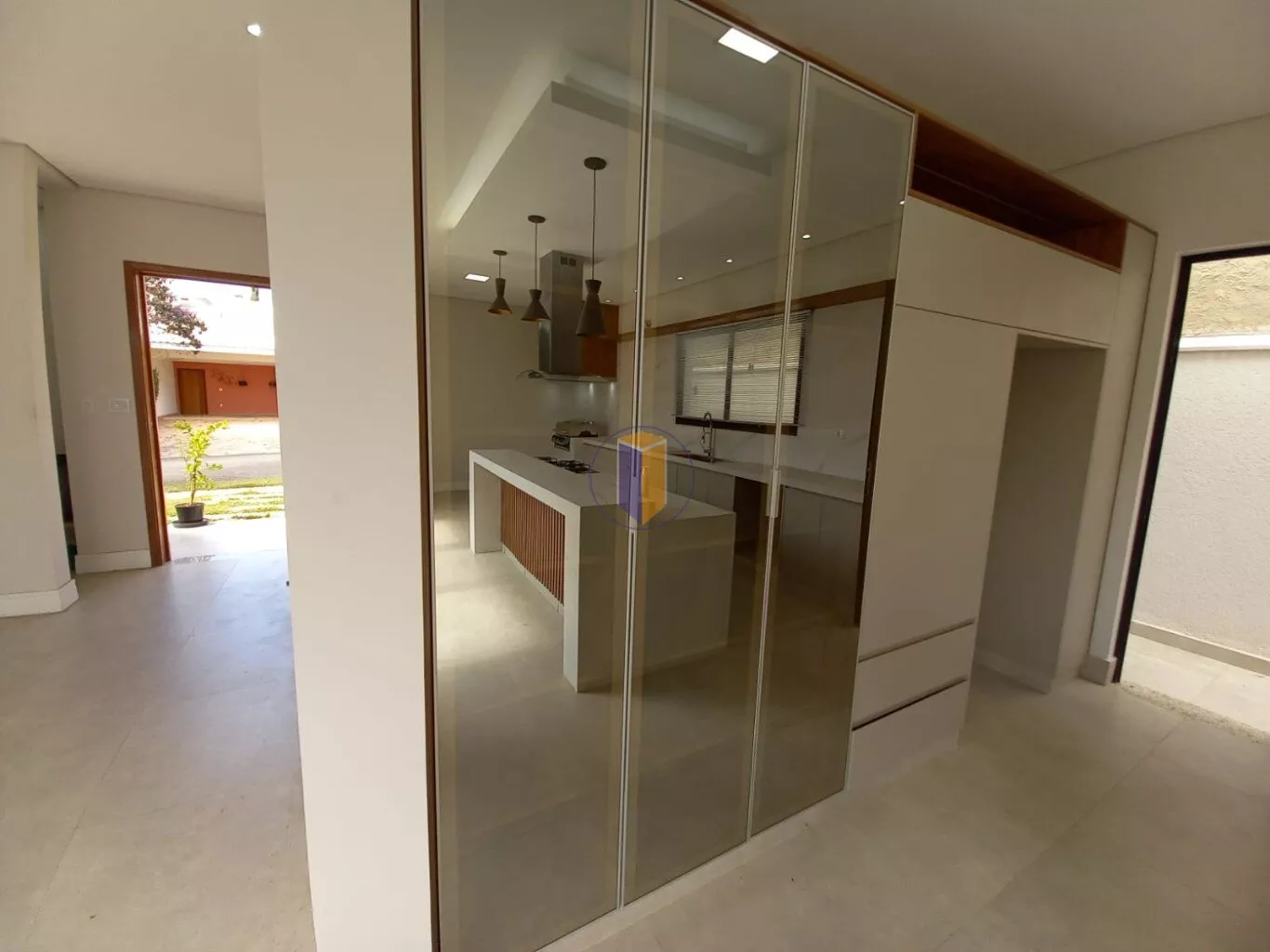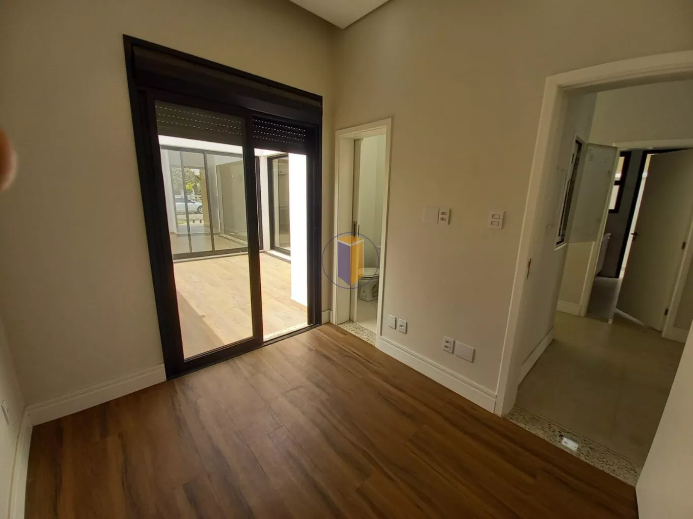 As cortinas das portas dos quartos são automatizadas, controladas por controle remoto.