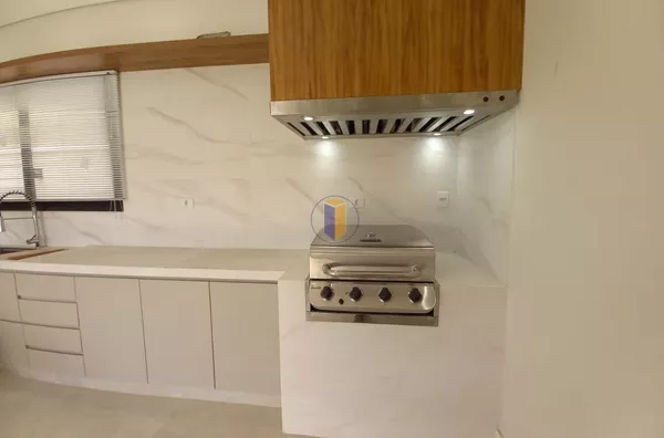 O cooktop é Brastemp. A churrasqueira é da marca Chair Broil(feita nos USA), a coifa da bancada é da marca francesa Frank, o exaustor da churrasqueira foi feita sob medida.