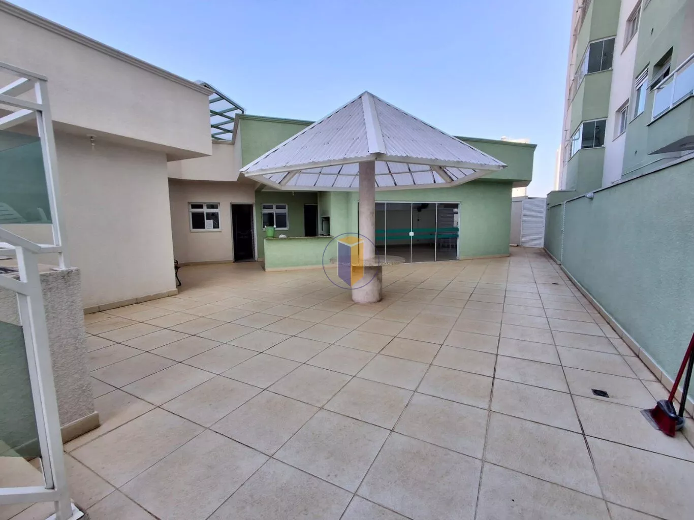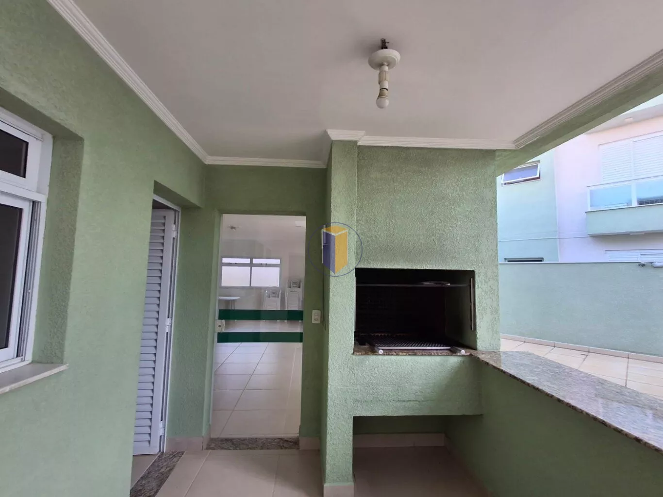 Salão de festas com cozinha e churrasqueira