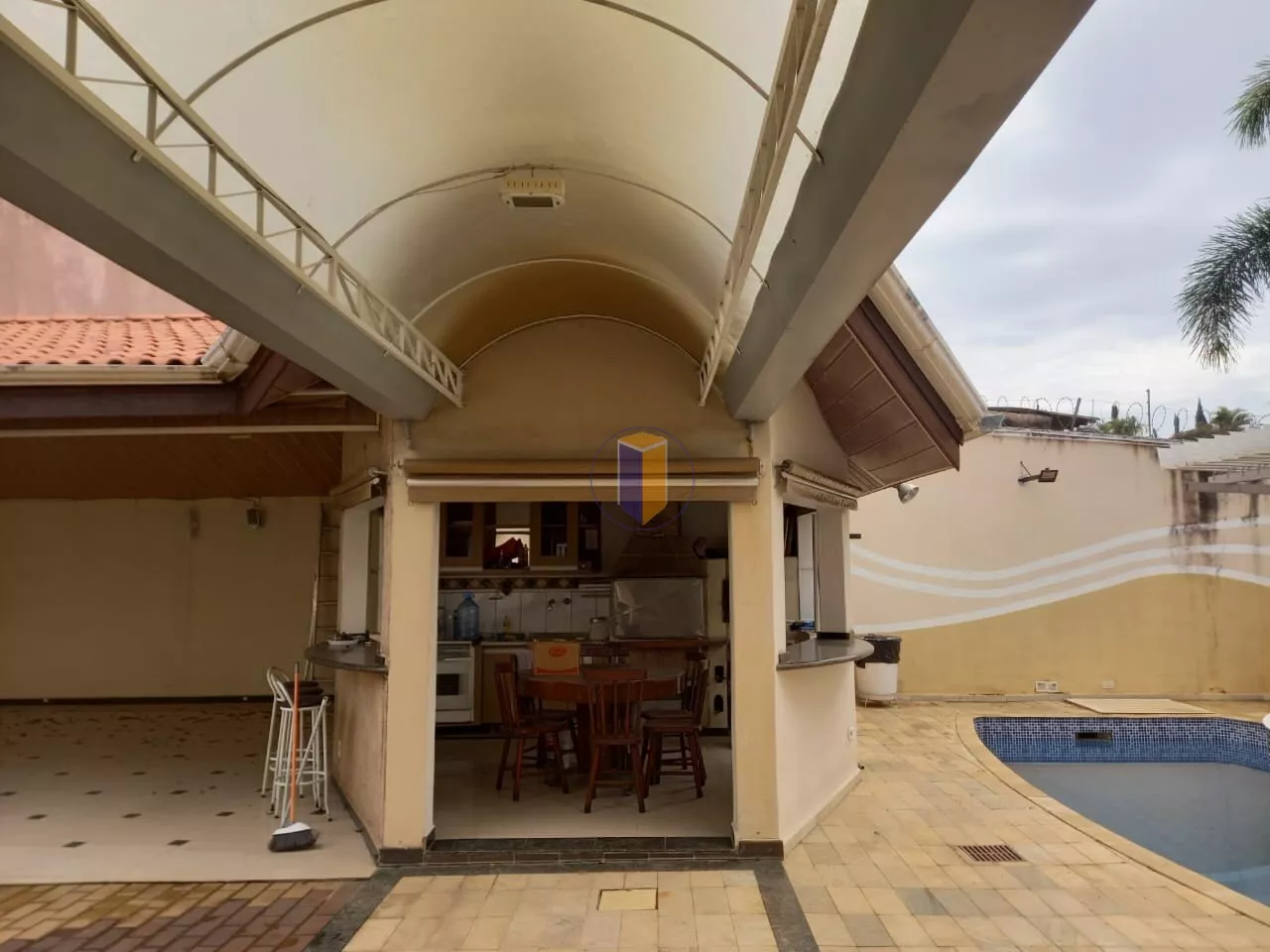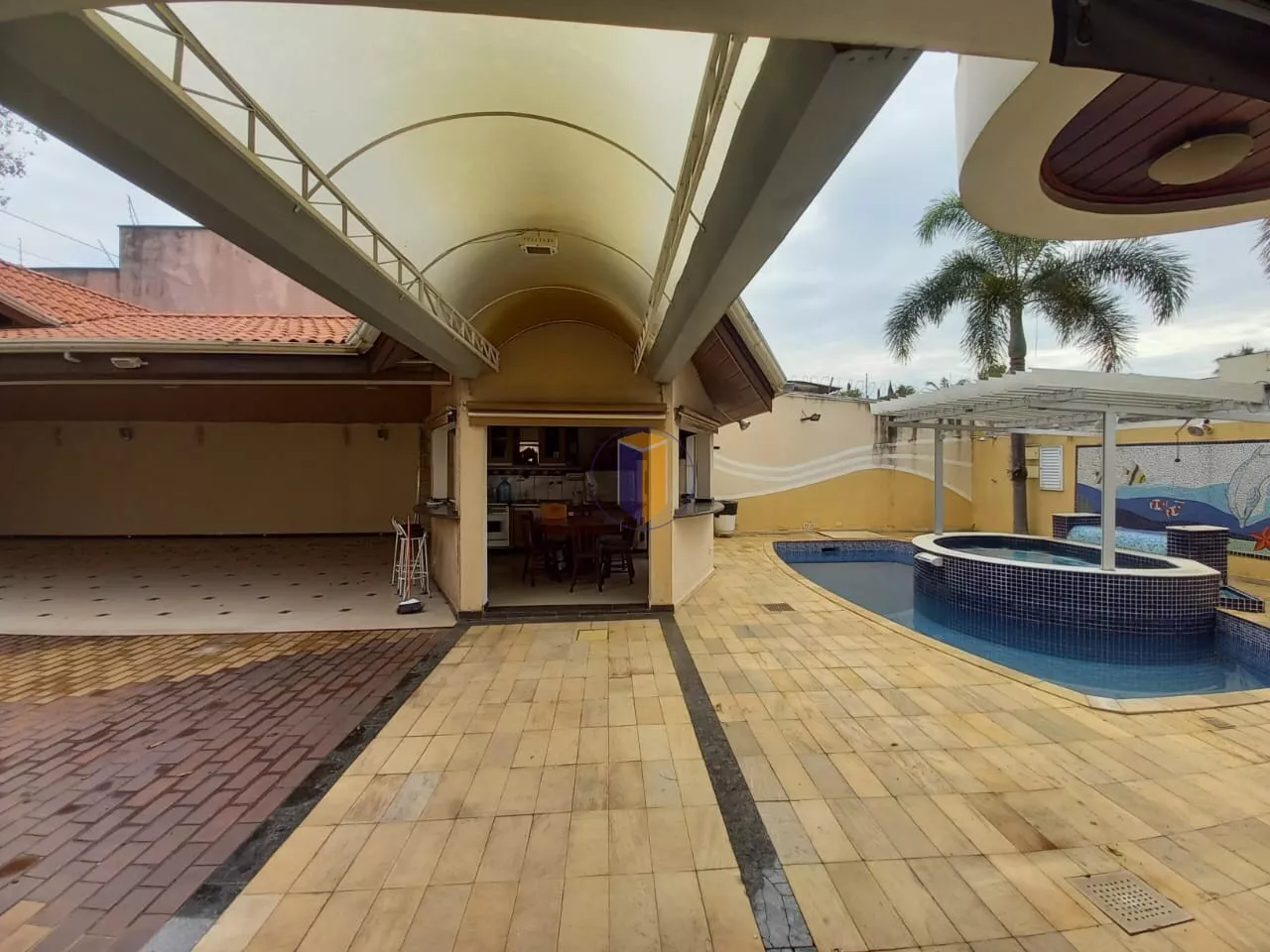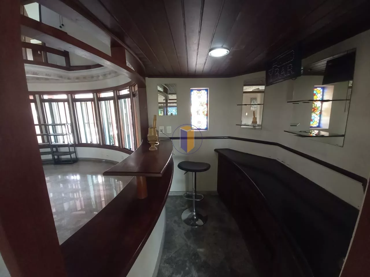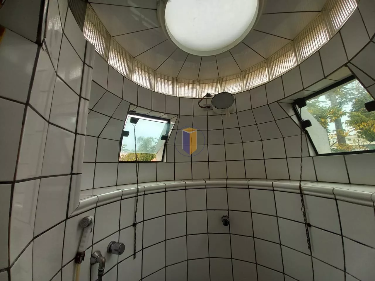 4 salas espaçosas (estar, jantar, TV e almoço), incluindo sala de jantar com vitraux no teto e telhado retrátil para ventilação