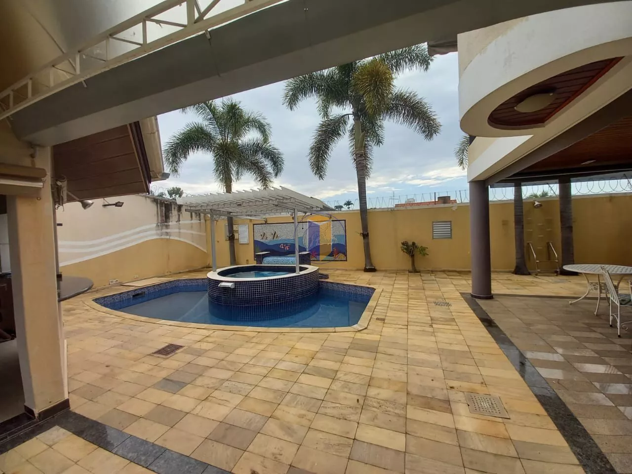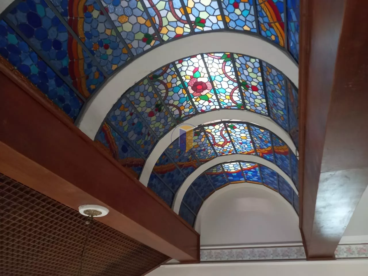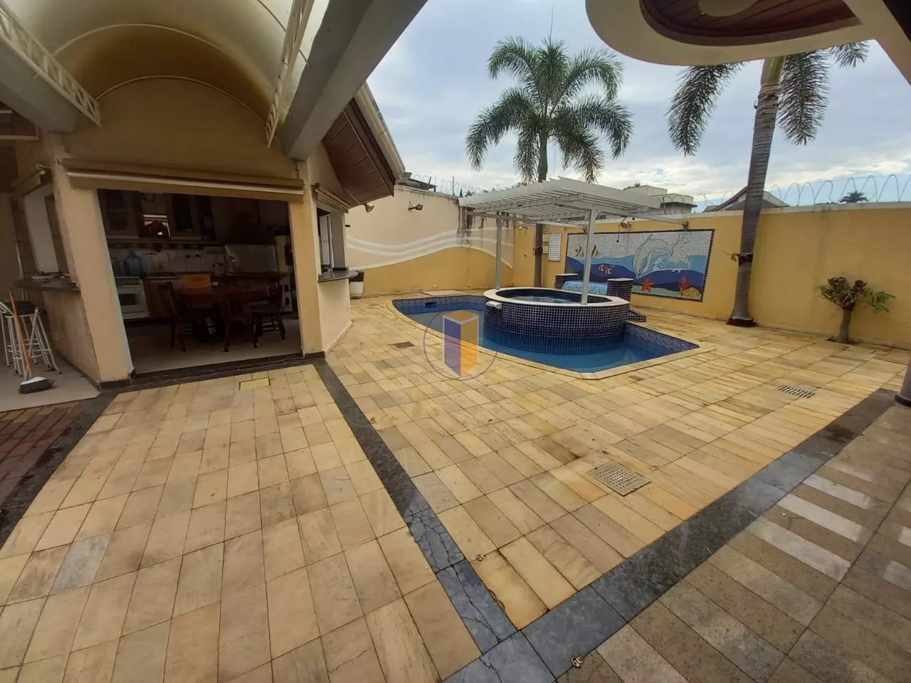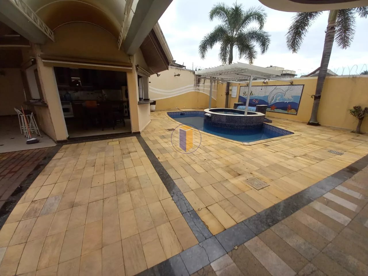 4 salas espaçosas (estar, jantar, TV e almoço), incluindo sala de jantar com vitraux no teto e telhado retrátil para ventilação